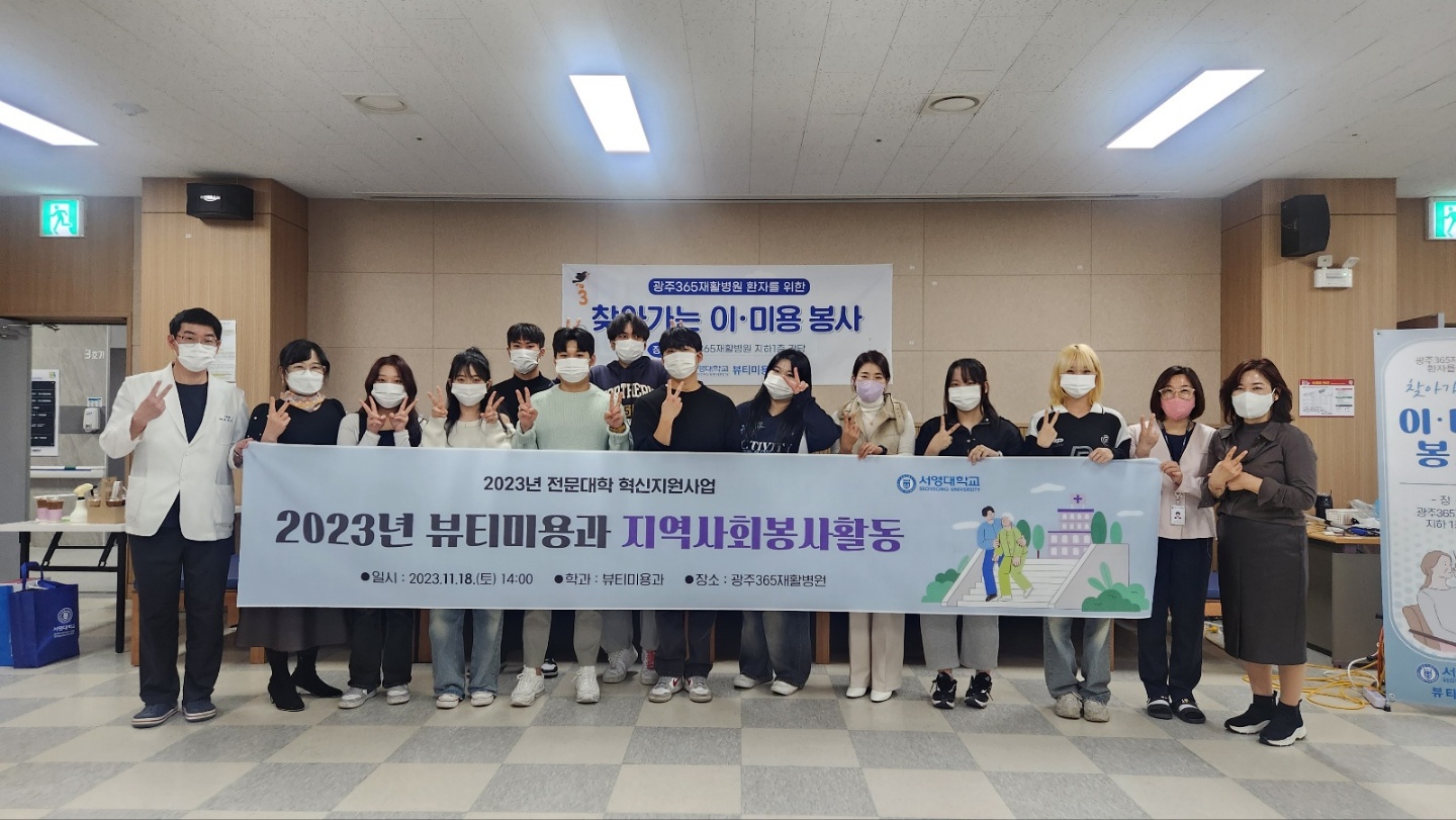 -서영대학교 뷰티미용과는 “2023년 전문대학 혁신지원사업의 지역사회봉사활동을 광주365재활병원에서 진행되었다. 이날 봉사는 재활병원에 환자를 대상으로 헤어커트 봉사를 주측으로 네일케어가 함께 진행되었다.