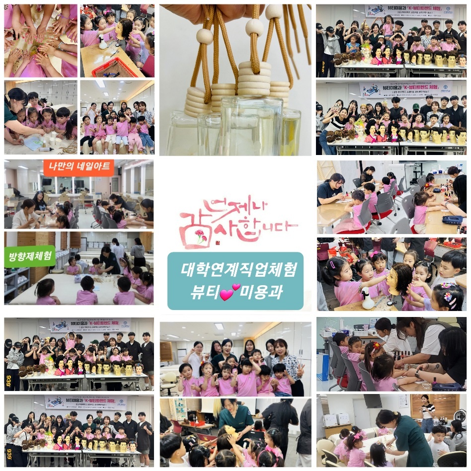 ○ 헤어, 피부, 네일 수업시간에 유치원 아이들이 참관을 해 직접 수업에 참여를 하는 뜻 깊은 시간을 가졌다.