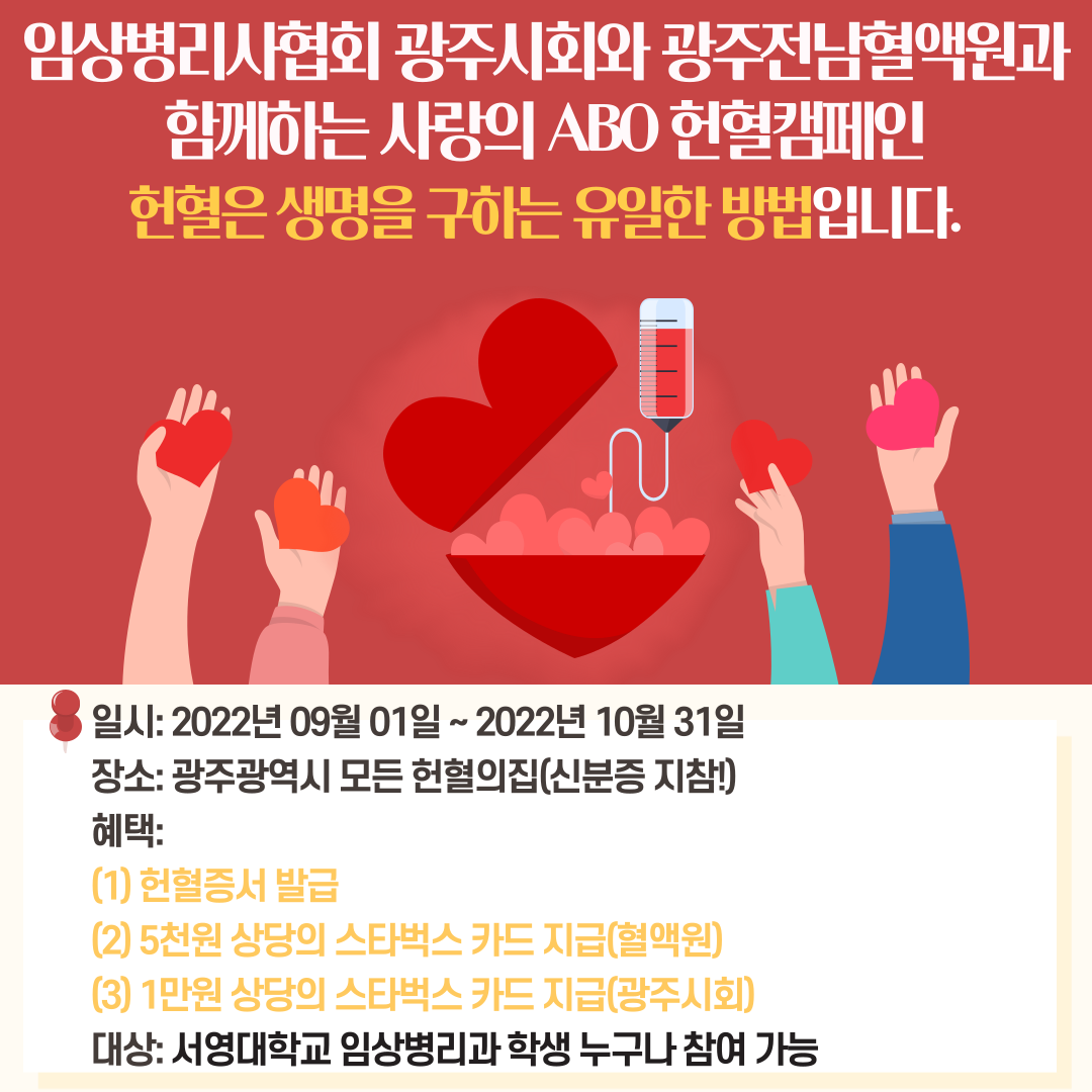 임상병리사협회 광주시회와 광주전남혈액원과 함께하는 사랑의 ABO 헌혈캠페인