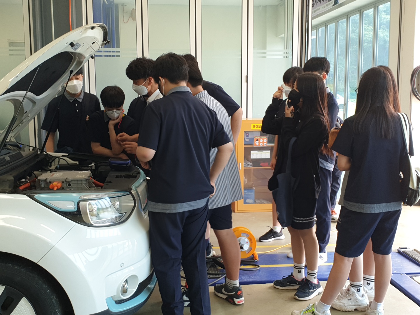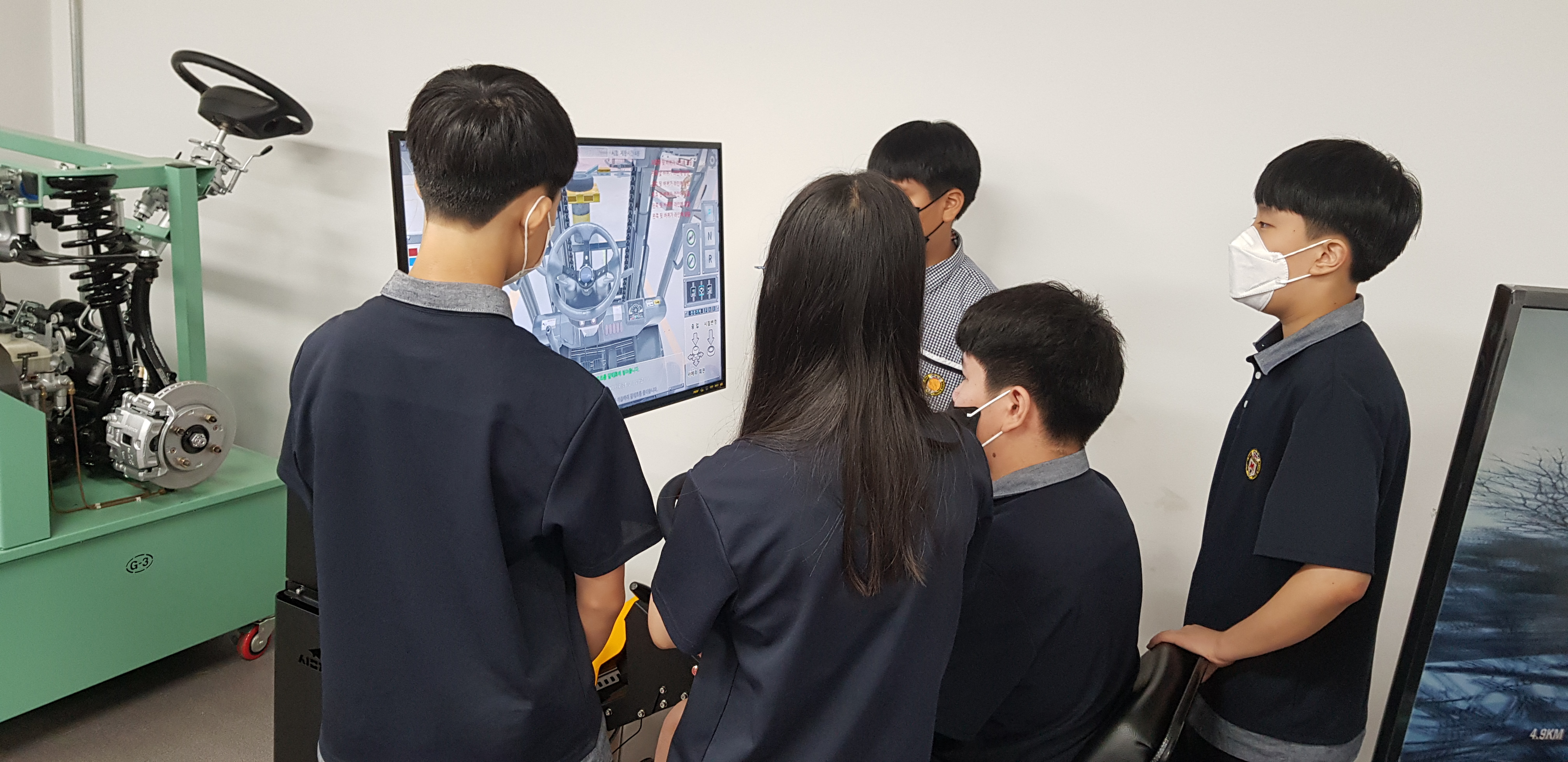 파주시 진로체험지원세터 주관으로 파주 문사동중학교 1학년 학생들이 미래자동차과에서 미래자동차 산업에 대해서 진로 체험을 했습니다. 문산동중학교 학생분들이 수업에 적극참여를 해주시고 대답도 열심히 잘 해주셔서 교수님께서 더 열정적으로 수업을 하실수 있었습니다. 수업뿐만 아니라 미래자동차과에 배치되어있는 지게차와 자동차운전 VR시뮬레이터를 체험을 통해 더욱더 수업을 즐겁게 재미있게 할 수 있었습니다. 그리고 실습장으로 와서 쏘울 전기자동차, 토요타 씨에나 하이브리드 자동차 시동거는 소리를 듣고, 배우며 친환경 자동차를 좀 더 이해할 수 있었습니다. 미래자동차과에서 보유한 첨단 자율주행자동차를 보면서 앞으로 4차 산업의 주인공들이 될 문산동중학교 학생들은 각자의 꿈을 그려보았습니다. 자율주행자동차를 디자인하는 디자이너 ~ 설계하는 설계엔지니어 ~ 제작, 생산하는 엔지니어~ 고장난 자율주행차를 고치는 정비엔지니어~ 도로에 주행하는 자율주행자동차를 통제하고 제어하는 원격제어 엔지니어~ 등 등 많은 꿈들을 꿀 수 있었던 시간이었습니다. 나중에 미래를 결정하는데 미래자동차과에 와서 경험했던것들을 통해서 도움이 되었으면 좋겠습니다! 수업과 실습을 열심히 참여해주신 문산동중학교 학생 여러분들 너무 감사하고 뜻깊은 시간이였습니다. 감사합니다~!!