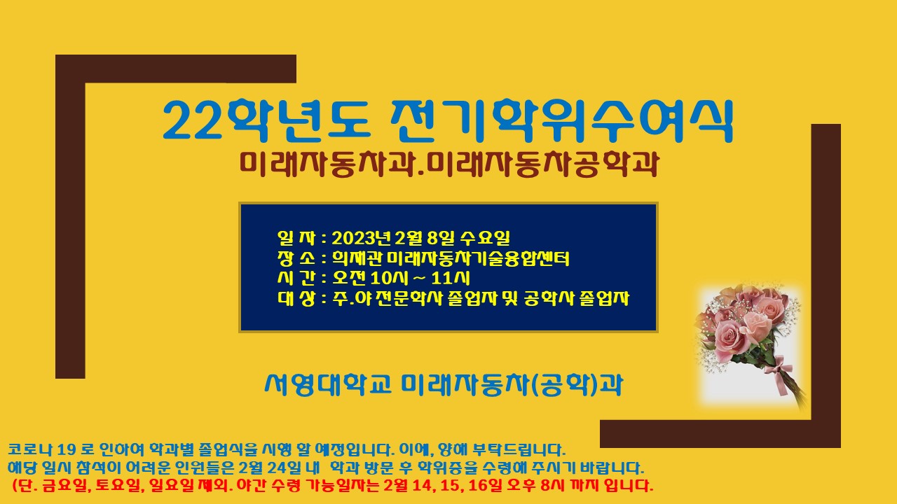 미래자동차과 22학년도 전기 학위수여식 안내 !