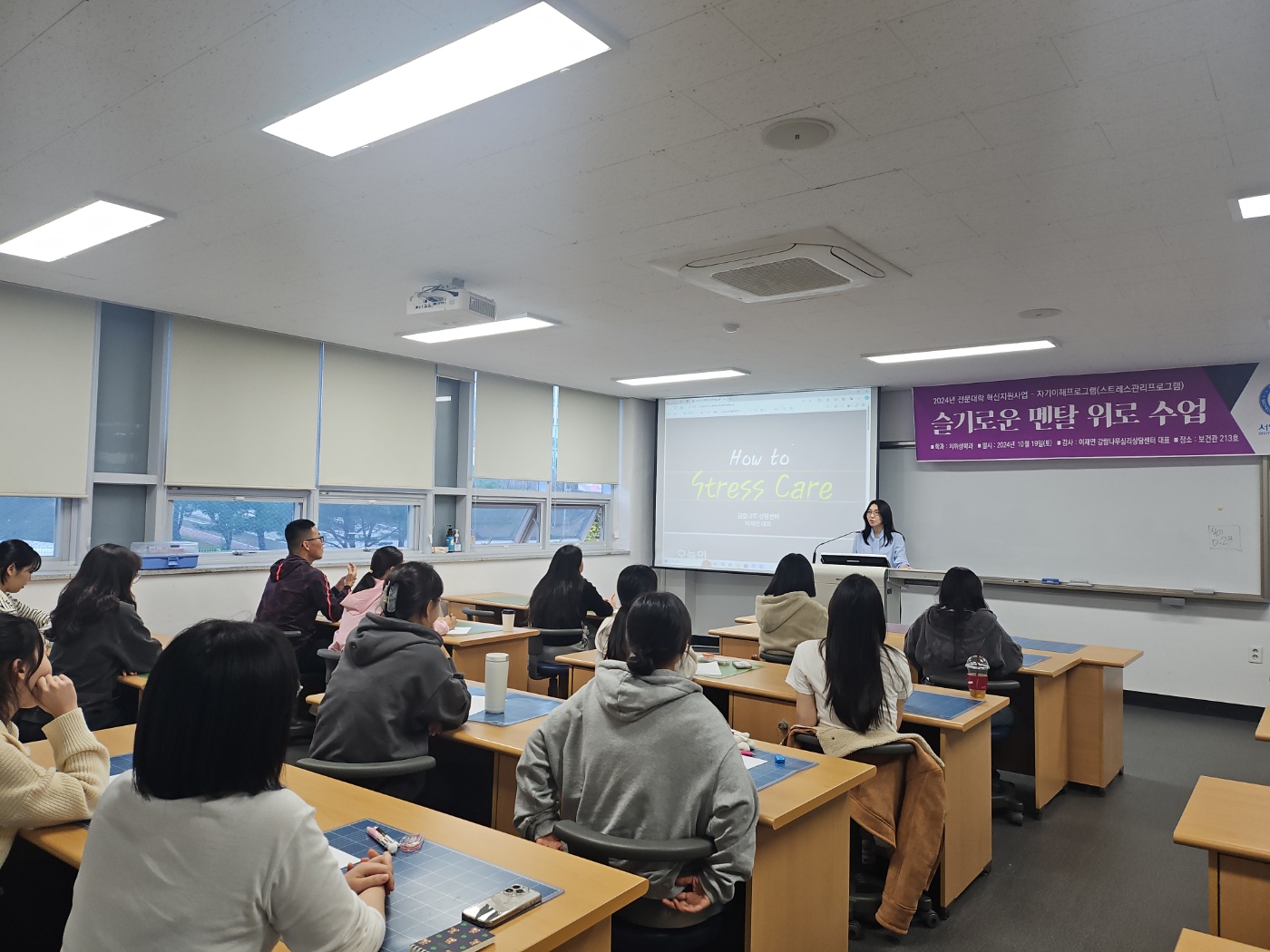인권상담센터에서 주관하는 스트레스 관리법에 대한 특강을 학사학위 전공심화과정 재학생들을 대상으로 진행하였습니다.