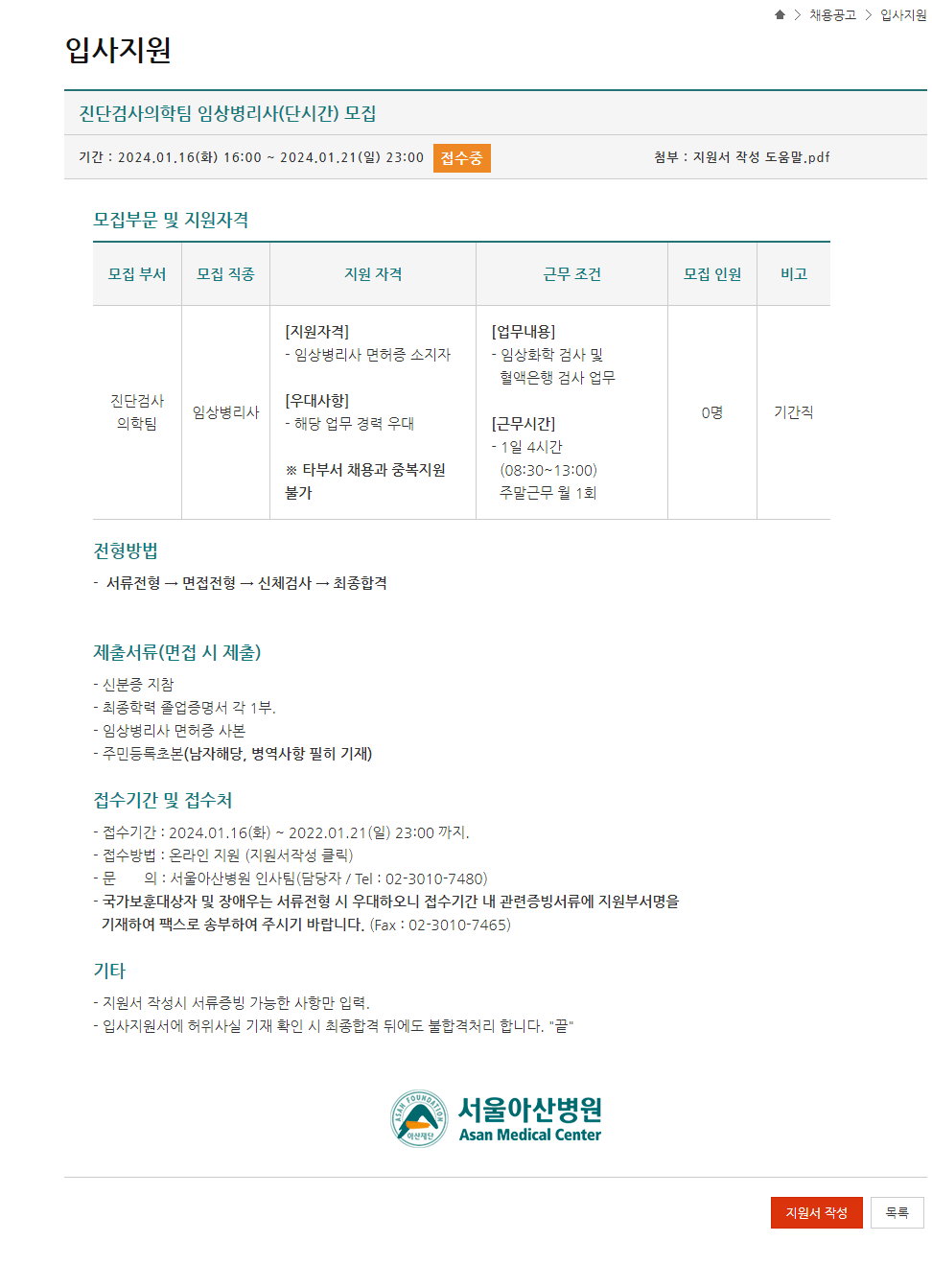 입사지원 | 채용공고 | 서울아산병원 (amc.seoul.kr)