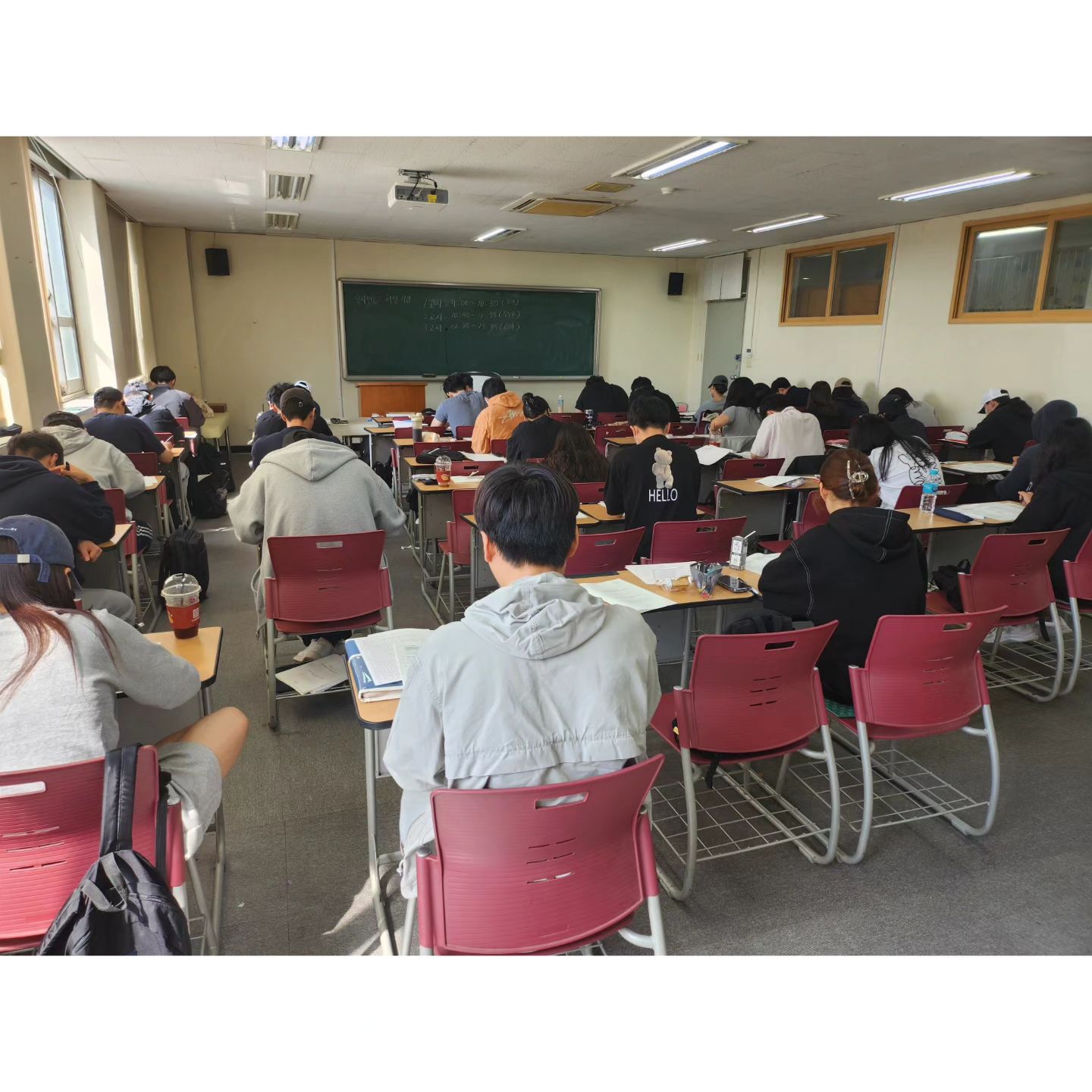 저희 물리치료과 3학년 학생들이 국가고시를 대비해 열심히 모의고사를 보고있습니다!