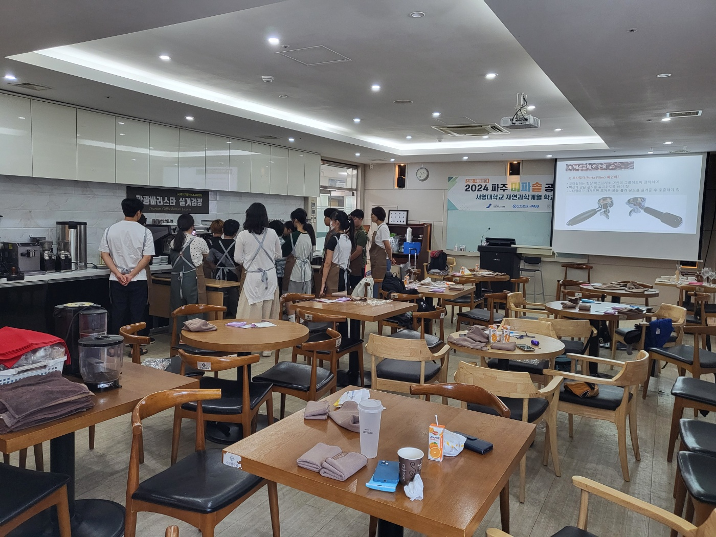 O. 우리대학(총장 김정수) 항공국제관광과(학과장 곽영대)는 '2024학년도 파주미파솔 공유학교 학과체험프로그램 커피바리스타 2급 자격증 체험반'을 개설하여 운영하였다. 서정관 호텔F&B(식음료)실습실에서 진행된 커피바리스타 2급 자격증 체험은 2024년 9월 21일 9시 30분부터 12시 40분까지 20명의 초중고학생들이 참여하였다.